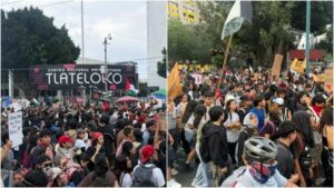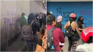 Durante la marcha de este 2 de octubre 2025, para conmemorar los 57 años de la masacre de Tlatelolco de 1968, contingentes ajenos a los que participan como estudiantes, colectivos, madres buscadoras, normalistas de Ayotzinapa, y otros, causaron destrozos por su paso.